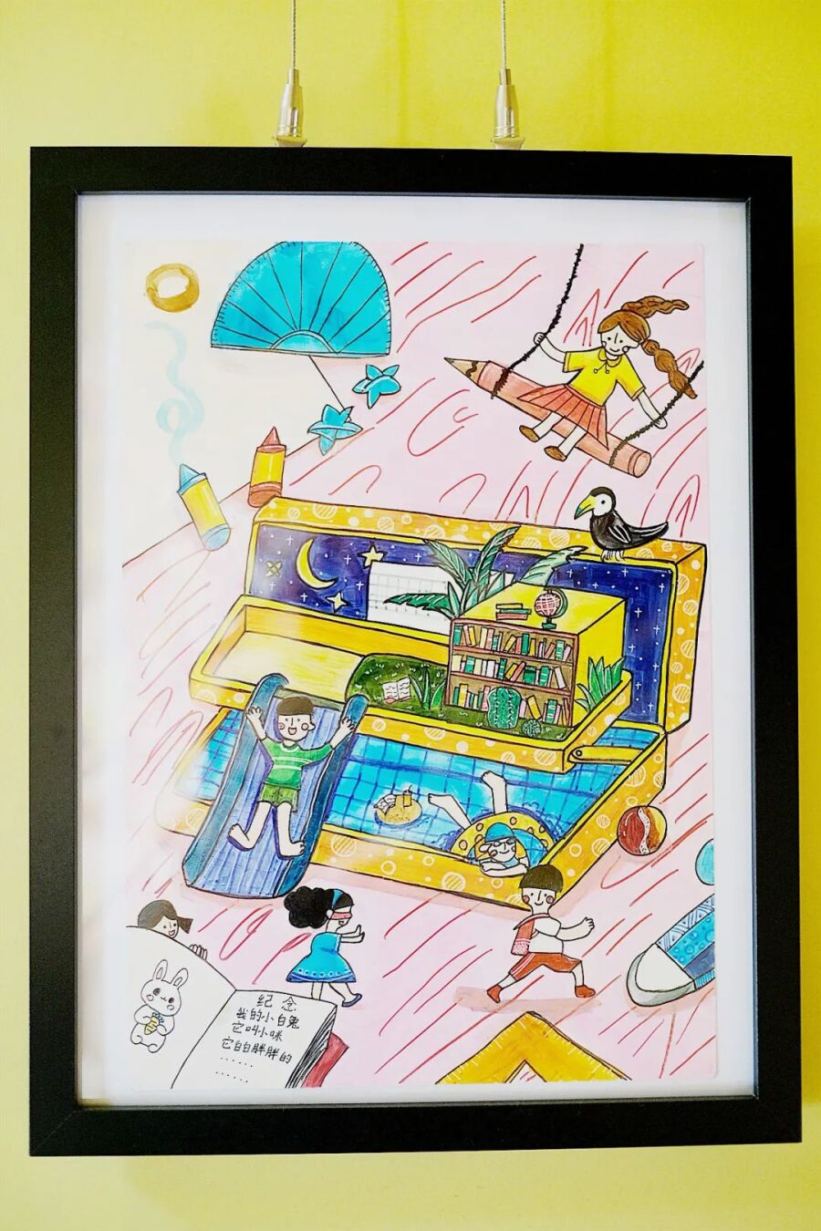 在乐涂少儿美术机构里面,挂满了很多学生的作品和奖杯。怎样才称得上是一幅优秀的绘画作品呢?黄烁认为,作品能够表达情绪、讲出故事,比起“画得像”更重要。