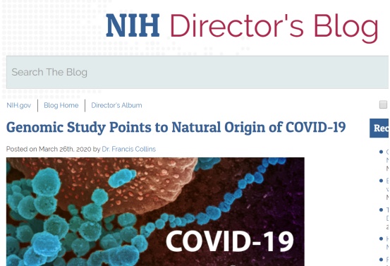 原标题:美国国立卫生研究院院长柯林斯:新冠肺炎病毒源于自然